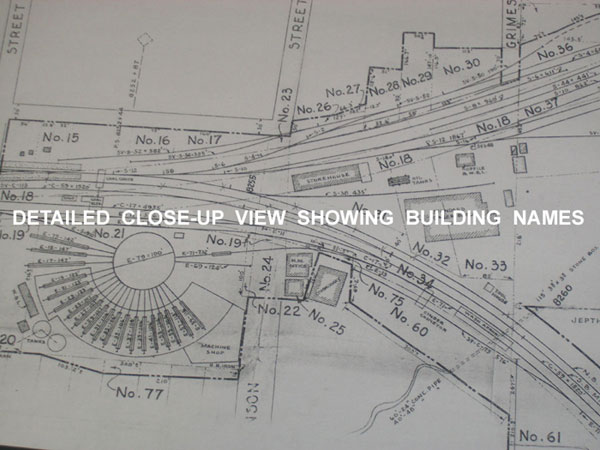 This 1954 map drawing is in 2 section due to it's size. Also included is a 1959 section showing the changes to the roundhouse stalls. (mailed in a tube) #5B is the original layout size.