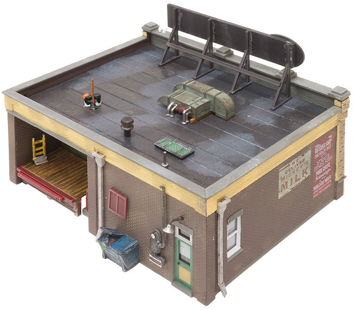 J. Frank's Grocery is modeled after the independently owned grocery stores that began sprouting up in the early 1900's. Many of those old stores can still be seen today in cities and small towns throughout America. Details and accessories include loading dock and dolly, large display windows, awnings, a kiddie ride and more! This building features window treatments and printed interior. See photos for footprint.
