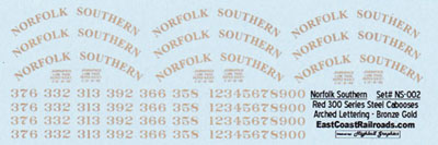 Original Norfolk Southern arch Bronge Gold decal set for the Red Steel Caboose # NS-002 (HO scale)