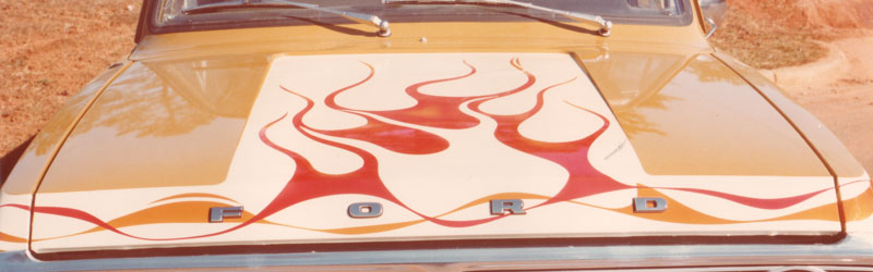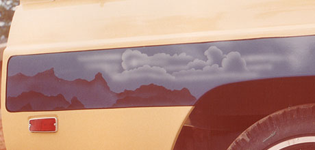 Mild Custom: Mural sides and hood, black lettering and pinstripes.